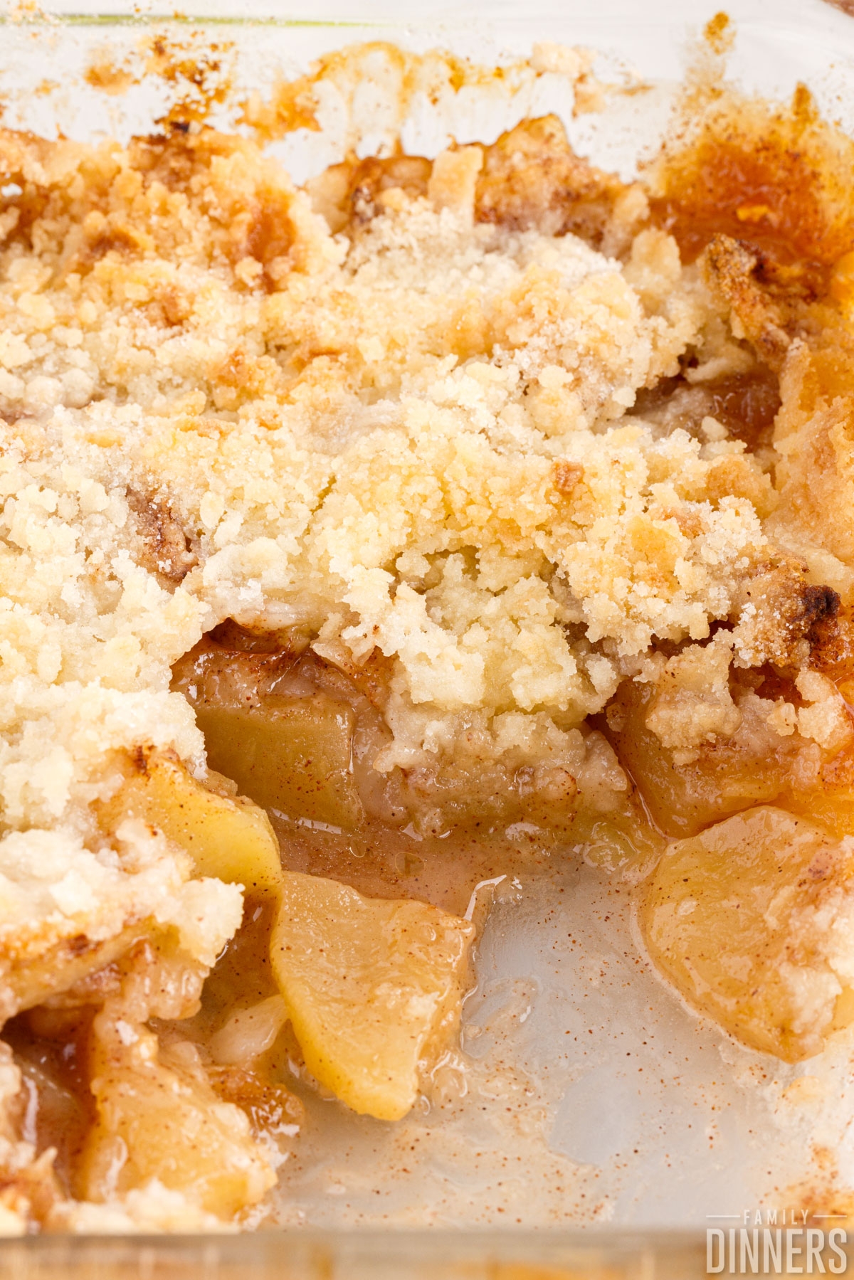 4. Sprinkle the crumb mixture evenly over the apples in the baking dish.