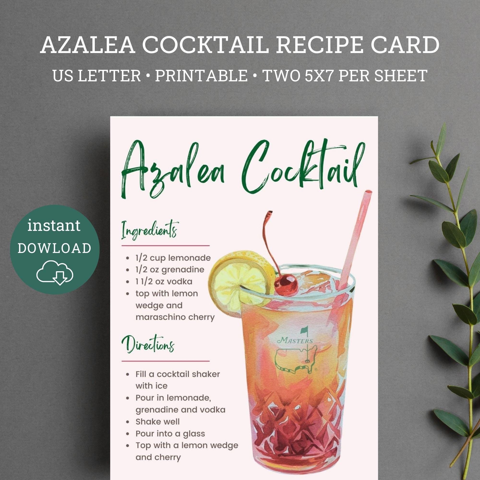 Master s Azalea Cocktail Printable Recipe Card Masters Party Masters Themed Party Masters Cocktails Golf Themed Gift Basket Etsy