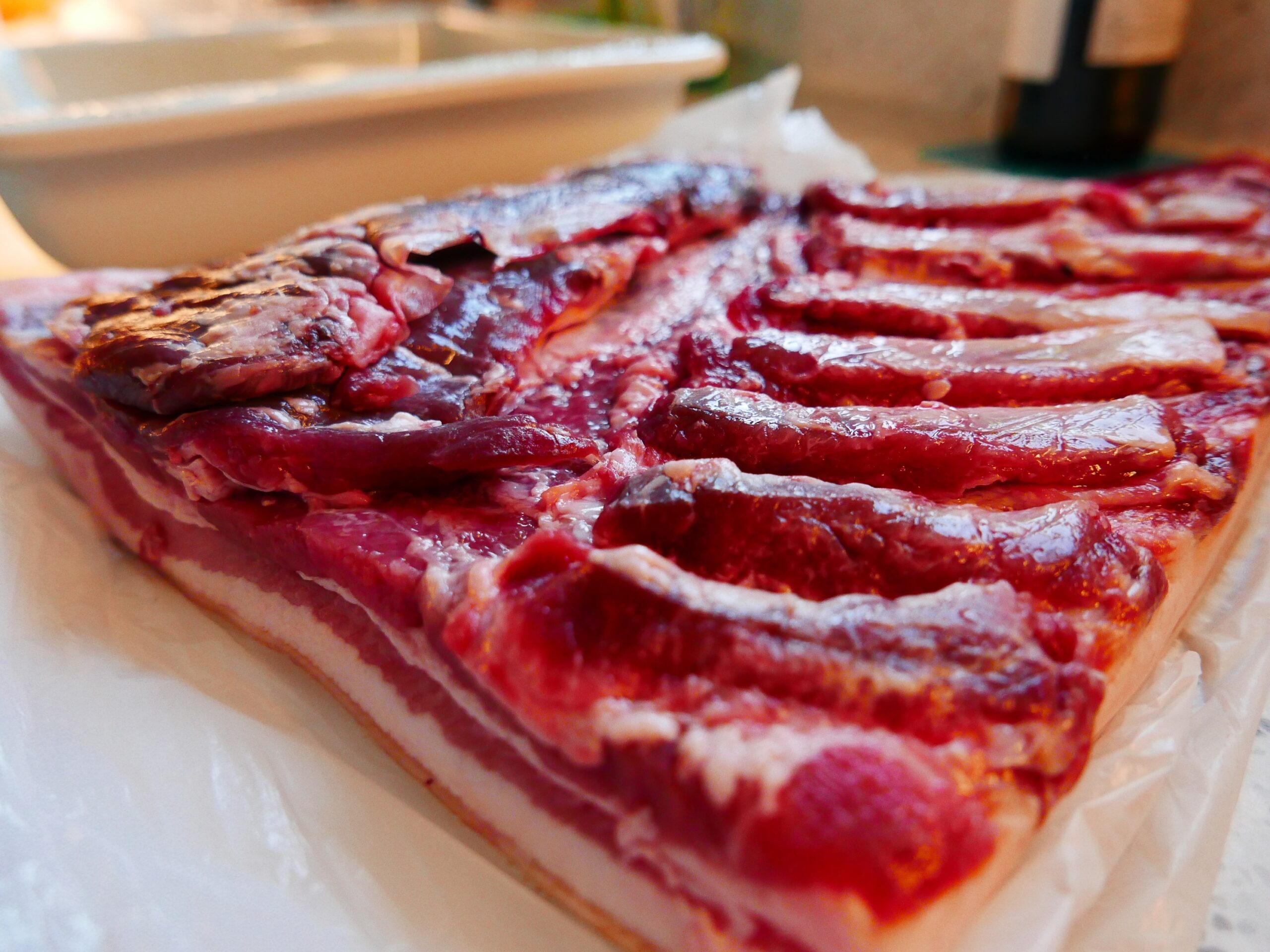 4. After 7-10 days, remove the pork belly from the bag and rinse off the cure under cold water.