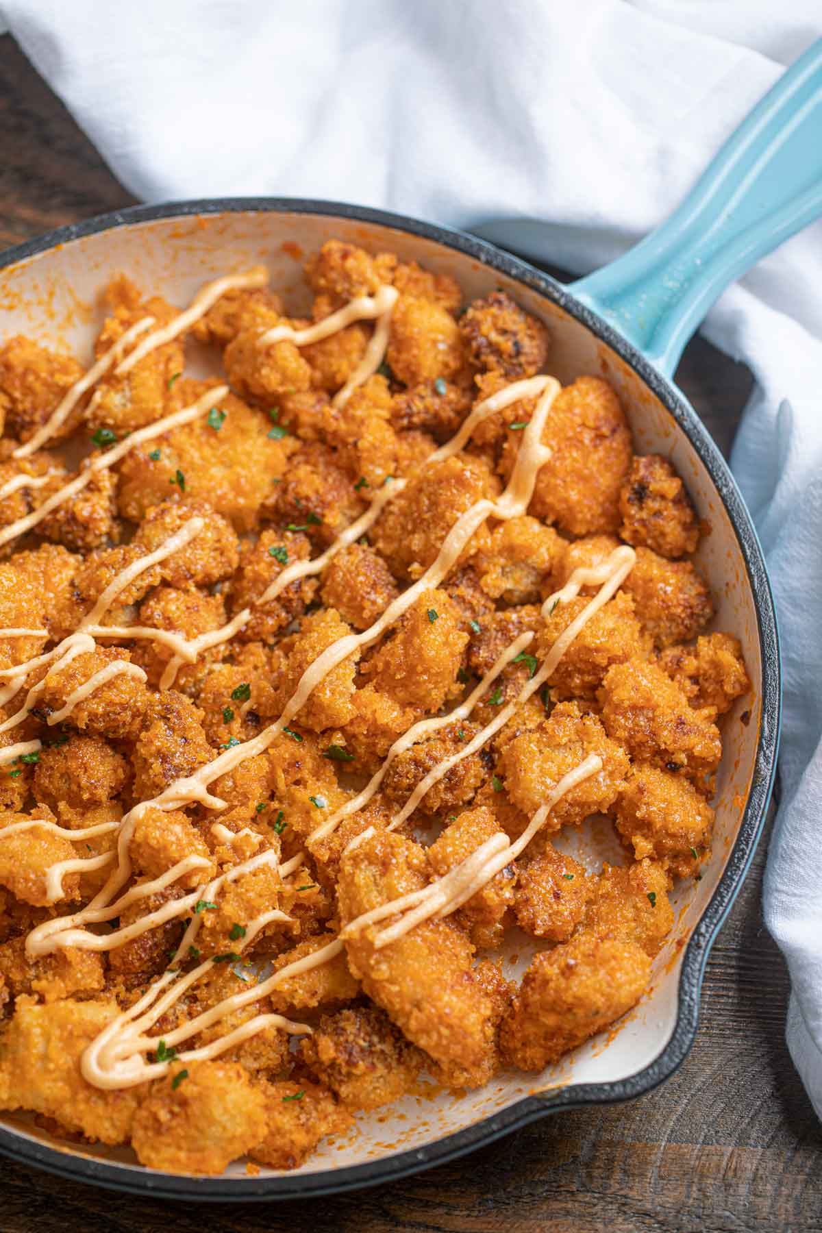 Looking to switch things up? Try using shrimp or tofu instead of chicken for a different twist on this recipe. You can also customize the level of heat by adjusting the amount of sriracha sauce in the sauce mixture. For a gluten-free option, use gluten-free panko breadcrumbs. Serve your bang bang chicken over a bed of rice or noodles for a complete meal that is sure to satisfy.