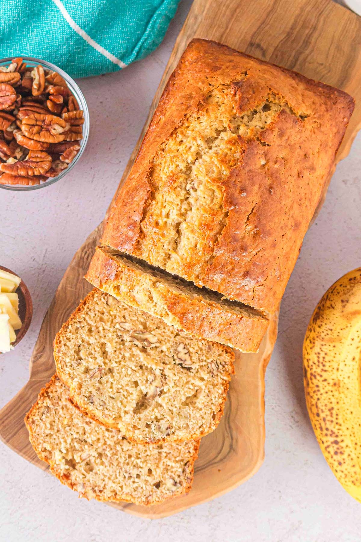 To mix things up, try adding a teaspoon of cinnamon or a splash of vanilla extract to the batter for extra flavor. You can also swap out the nuts for chocolate chips or dried fruit for a different twist. This bread can be stored in an airtight container at room temperature for up to 3 days, or frozen for longer storage. Serve slices of banana nut bread warm with a dollop of whipped cream or a smear of butter for a delicious treat.