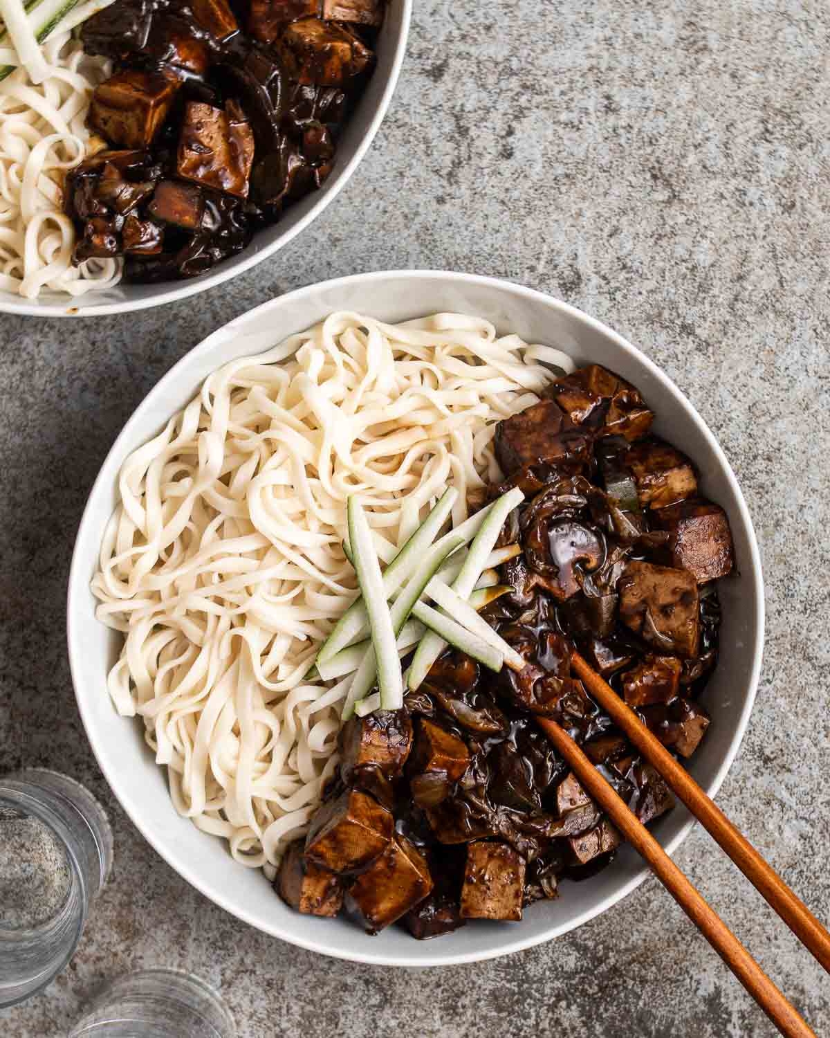 Vegan Jajangmyeon Korean Black Bean Sauce Noodles My Plantiful Cooking