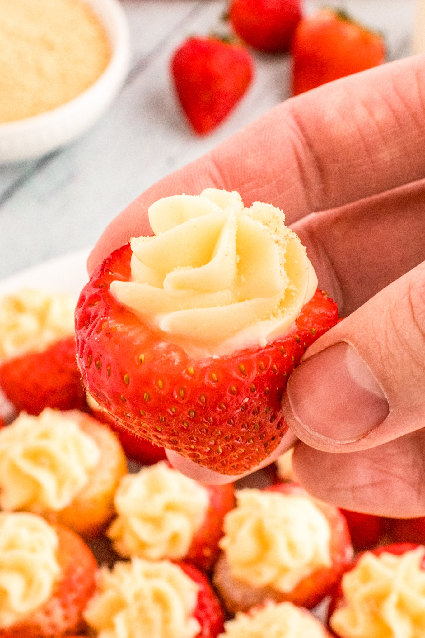 7. Serve chilled and enjoy your delicious cheesecake deviled strawberries!