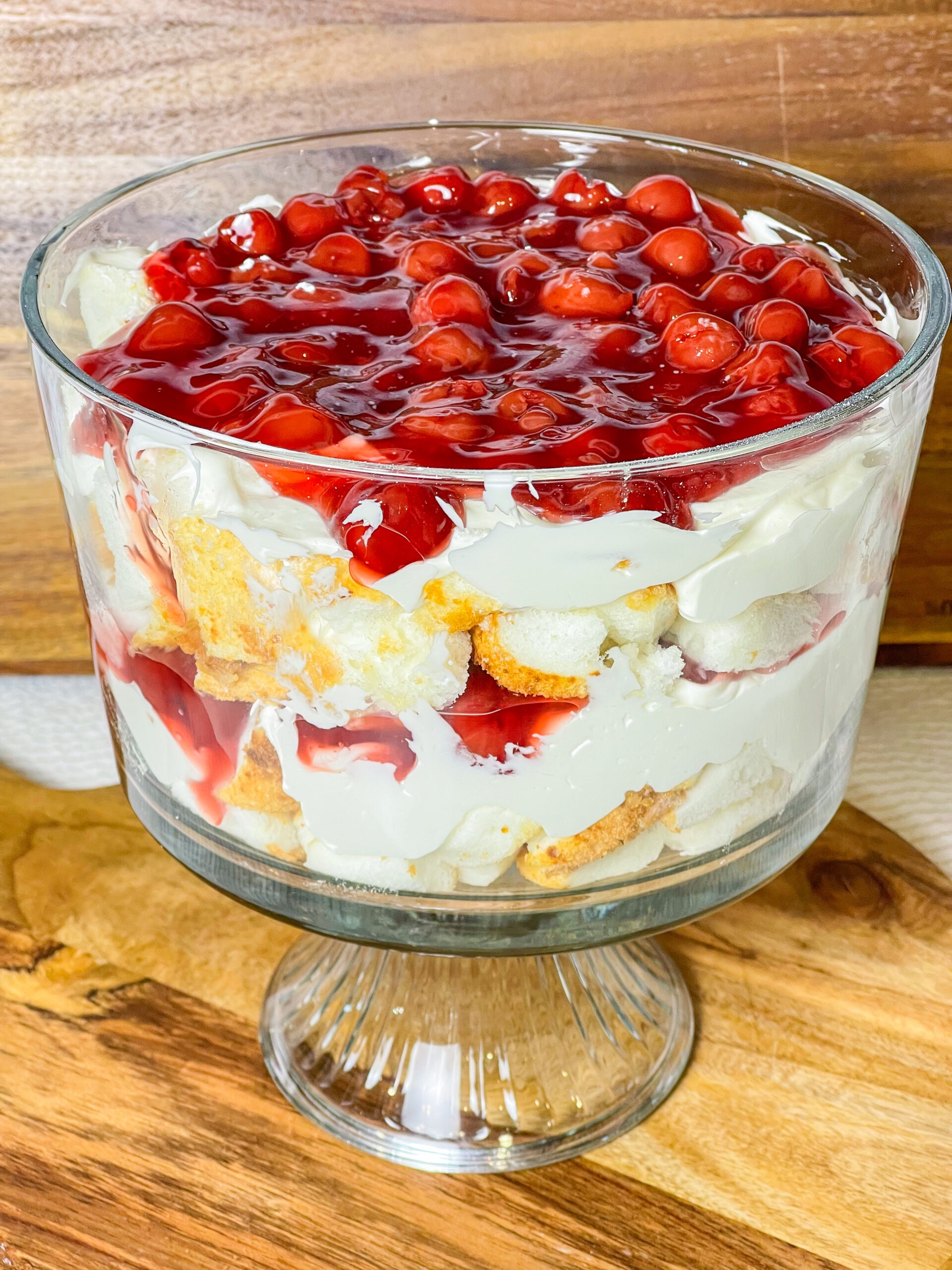 4. Repeat the layers until all of the whipped cream and cherry pie filling are used.