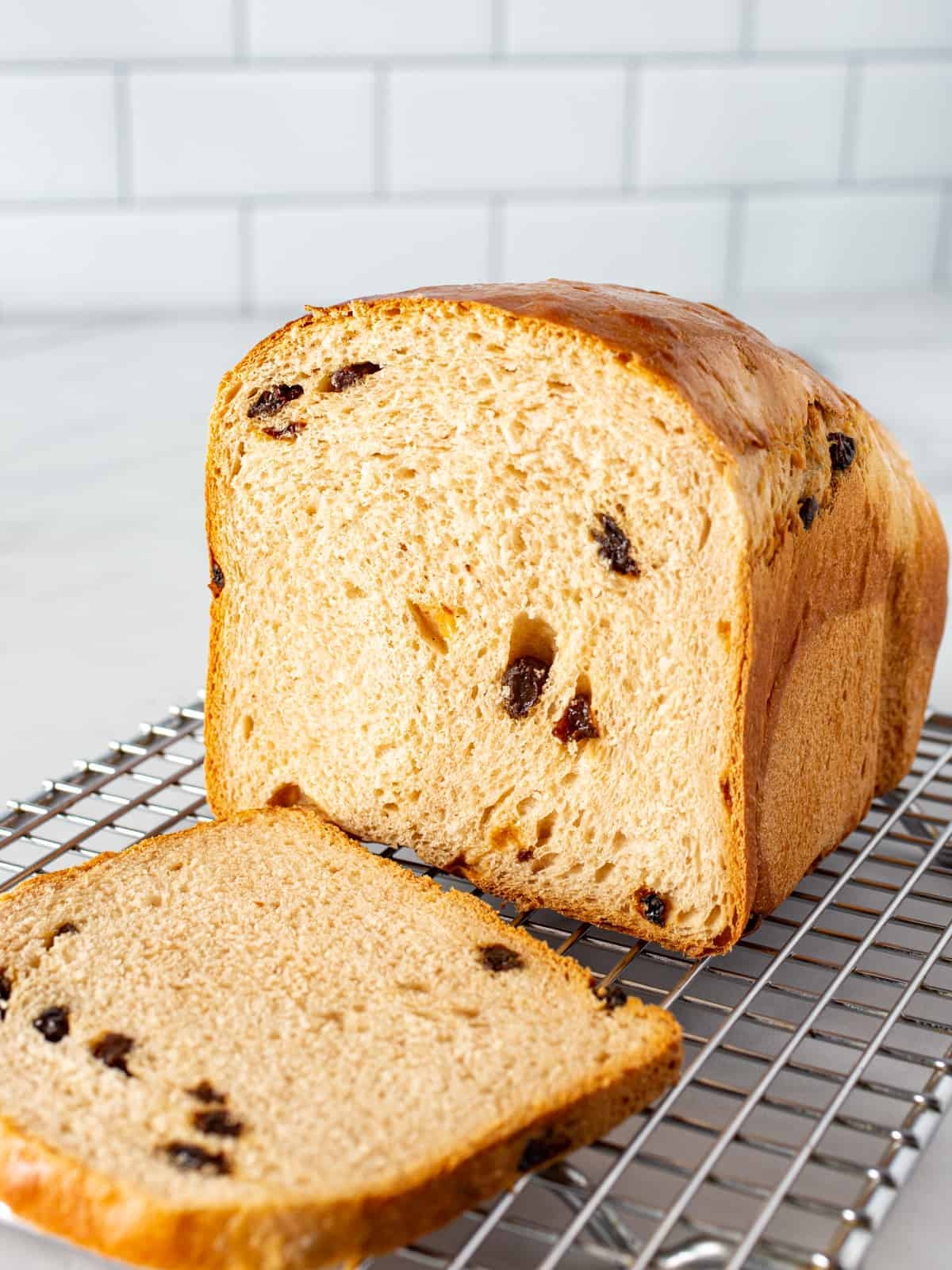 5. Slice and enjoy your freshly baked cinnamon raisin bread.