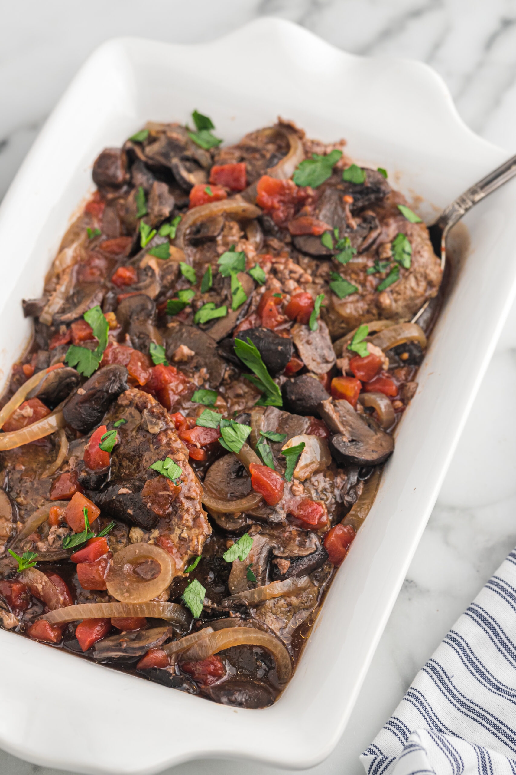 10. Serve the cube steak hot, garnished with fresh parsley.