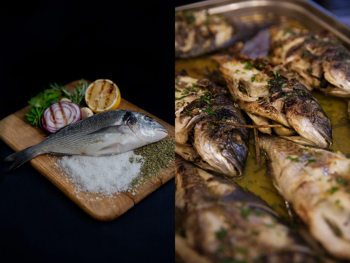 Baked Dorado Or Sea Bream With Grilled Vegetables And Herbs Diane Kochilas