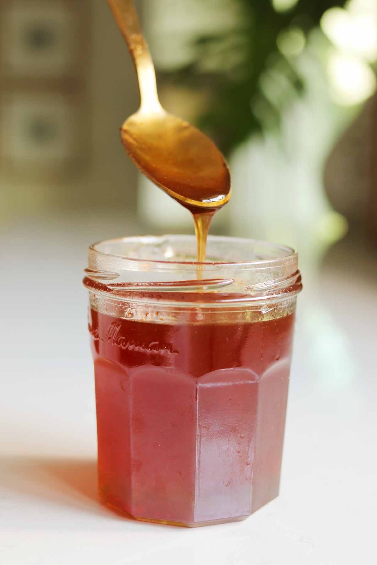 8. Use the hot honey sauce immediately or let it cool completely before sealing the jar.