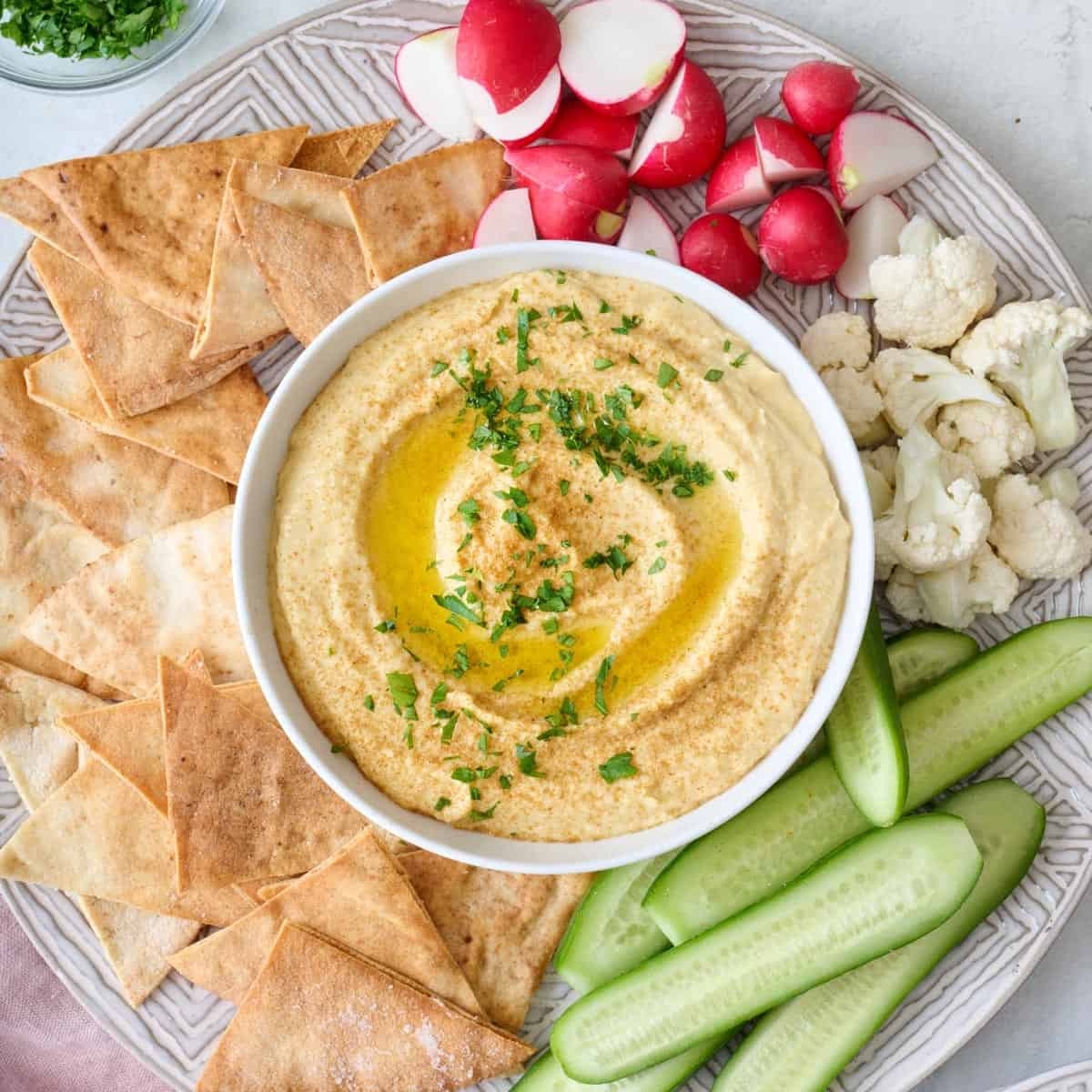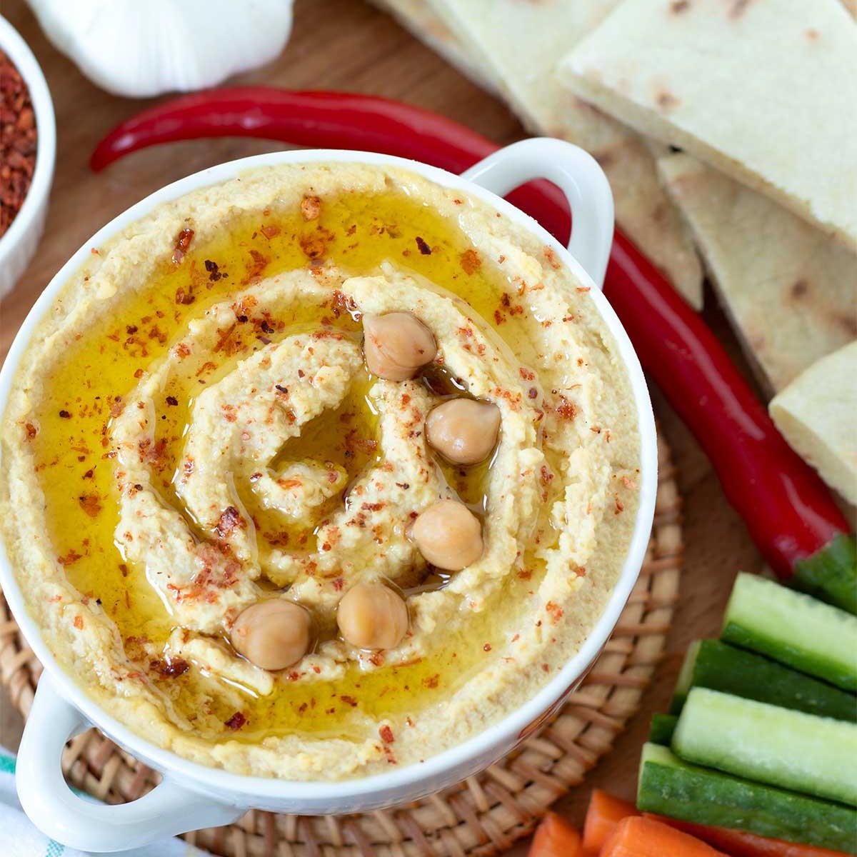 For a fun twist, try serving your hummus with veggie sticks, pita chips, or toasted bread.