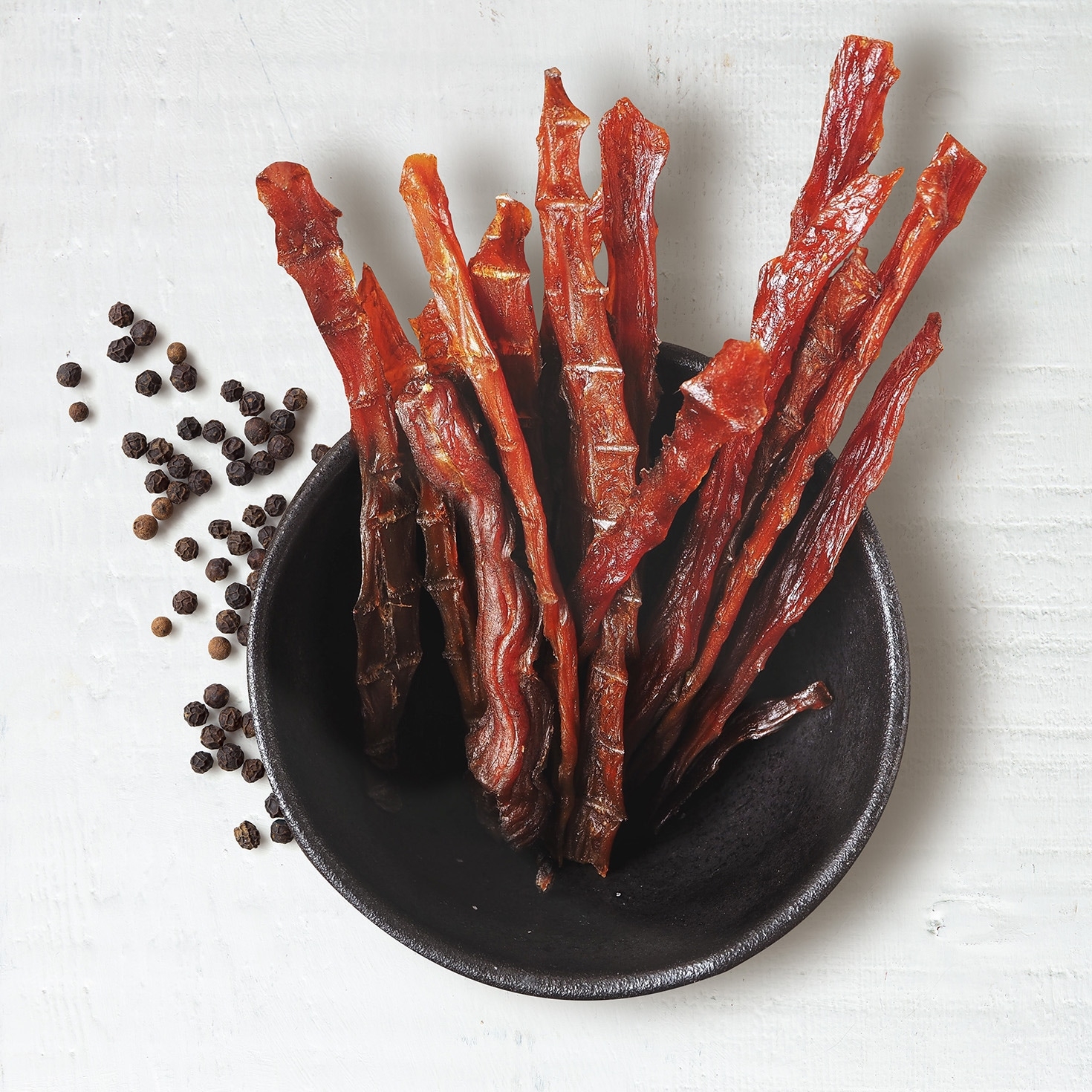 7. Bake for 3-4 hours, flipping the meat halfway through, until dry and chewy.