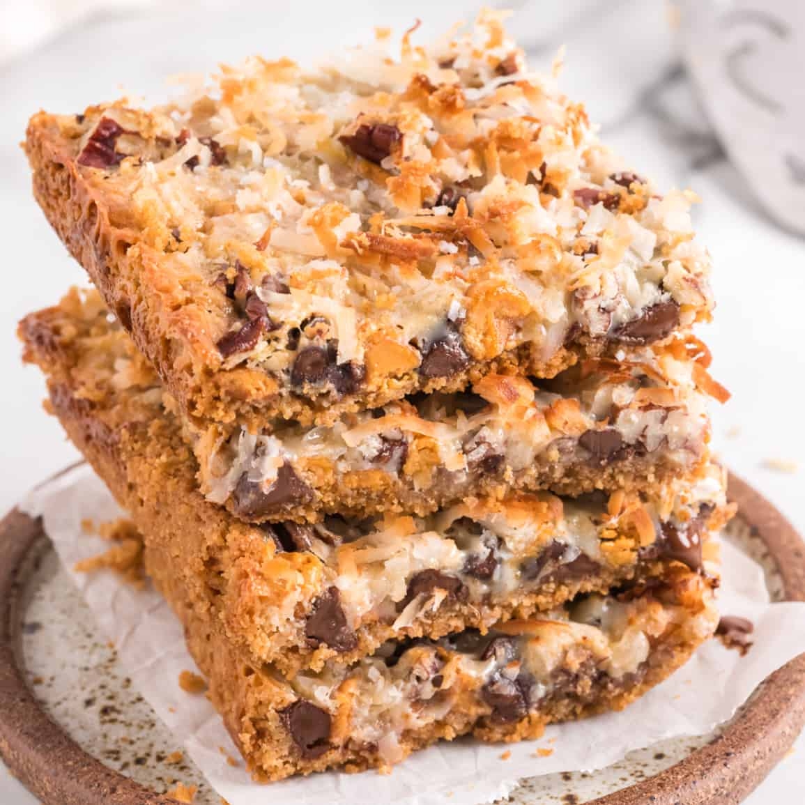 For storage, keep your magic cookie bars in an airtight container at room temperature for up to a week. If you prefer a chewier texture, try storing them in the refrigerator.