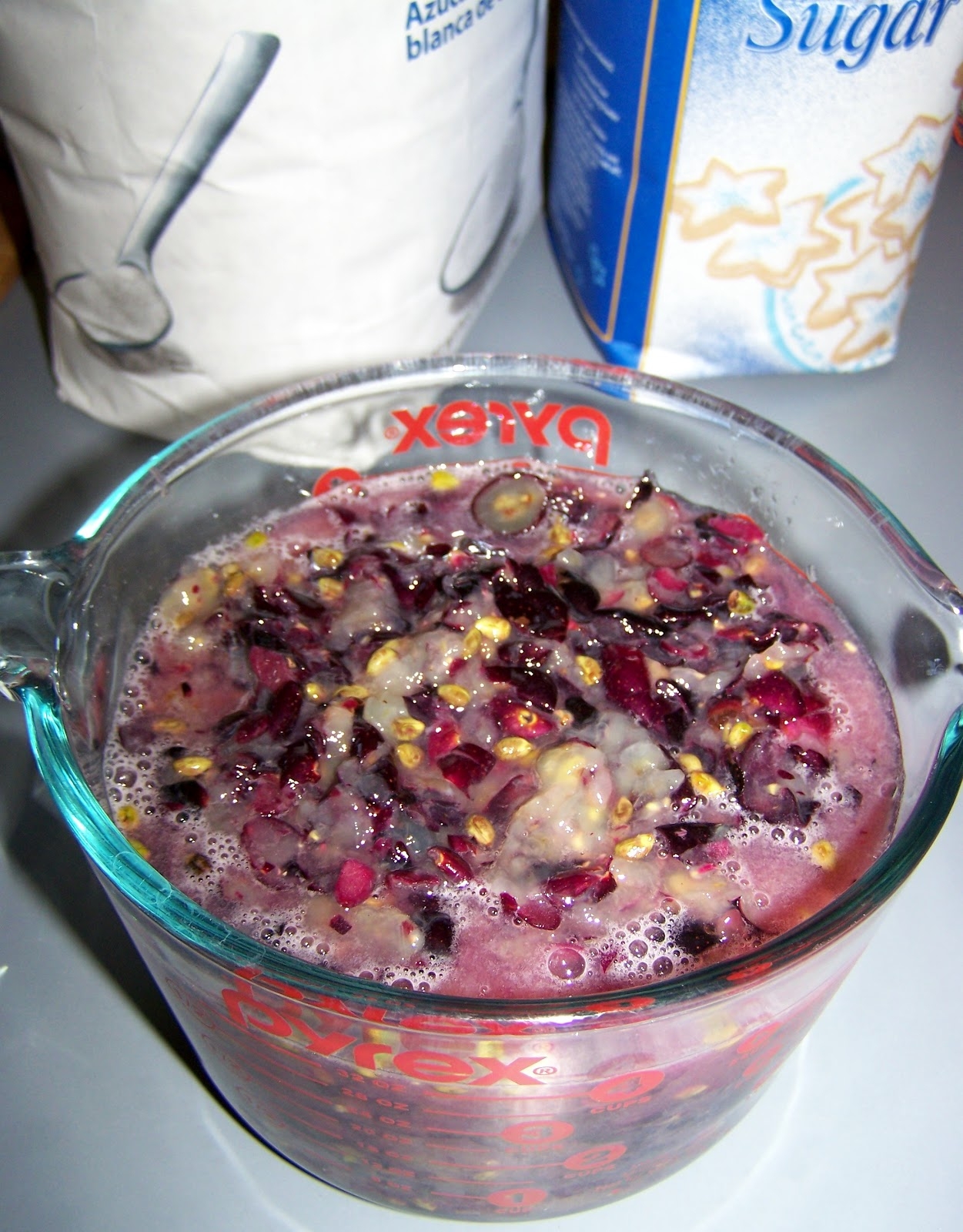 2. Place the grapes in a large pot and crush them with a potato masher to release the juice.