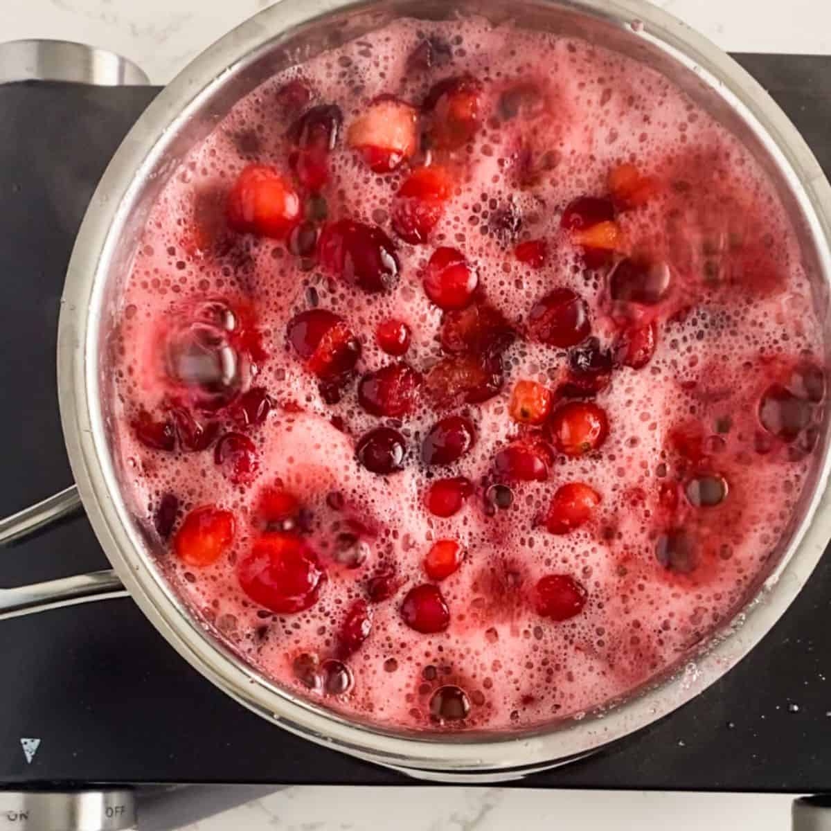 5. Simmer for 10-15 minutes, stirring occasionally, until cranberries burst and sauce thickens.