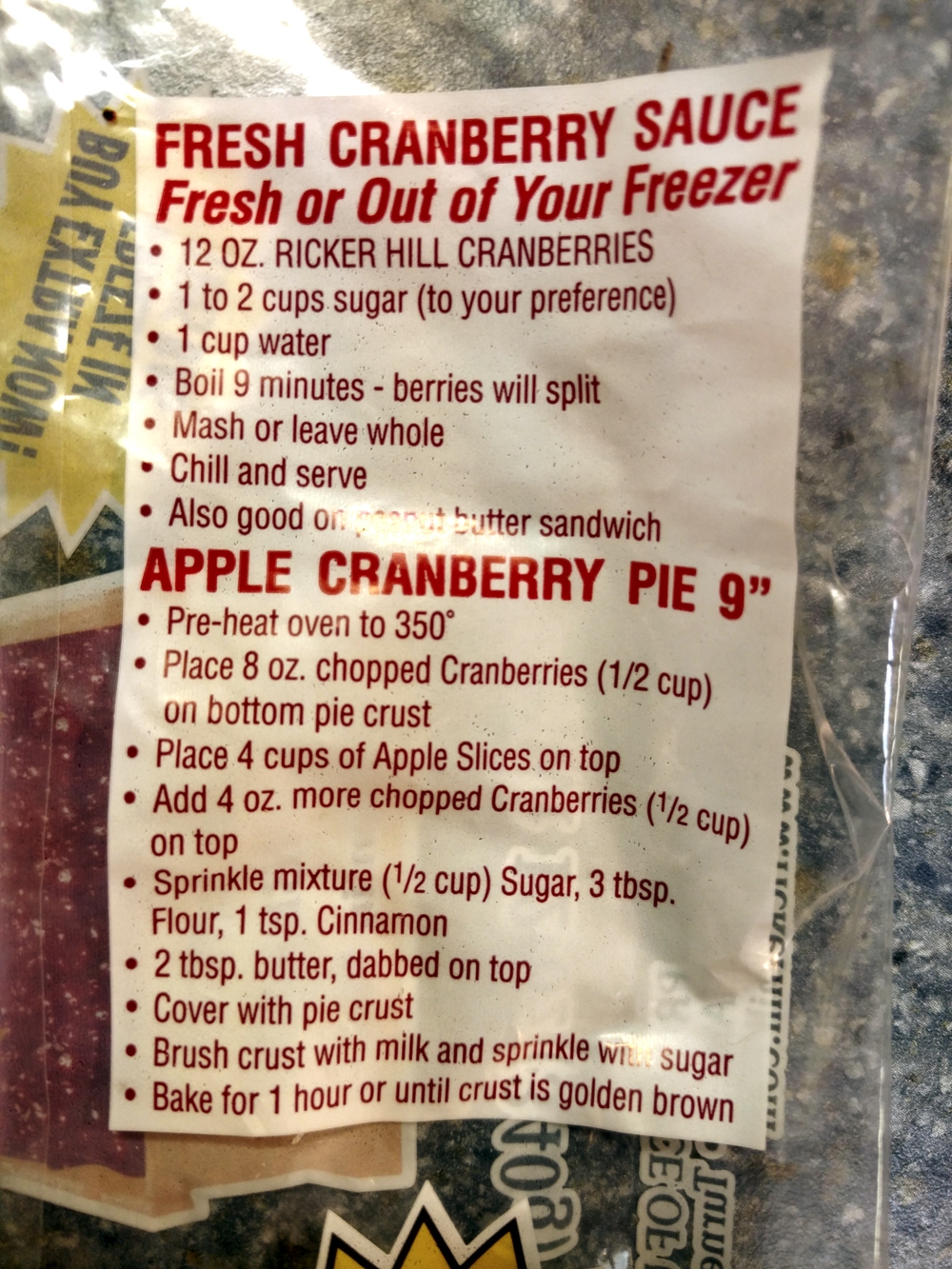 – 1 12-ounce bag of fresh cranberries