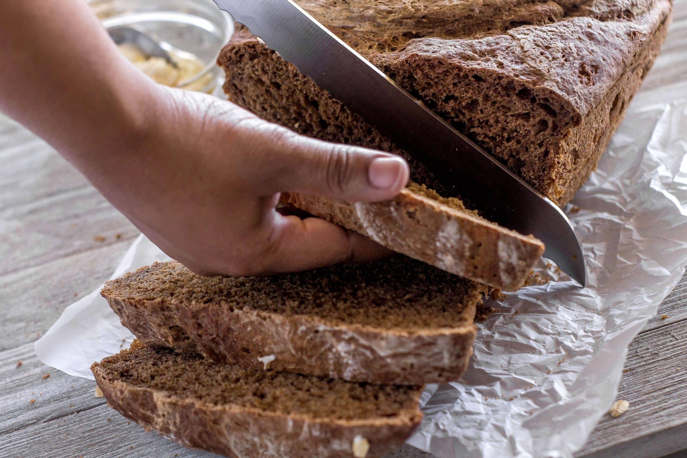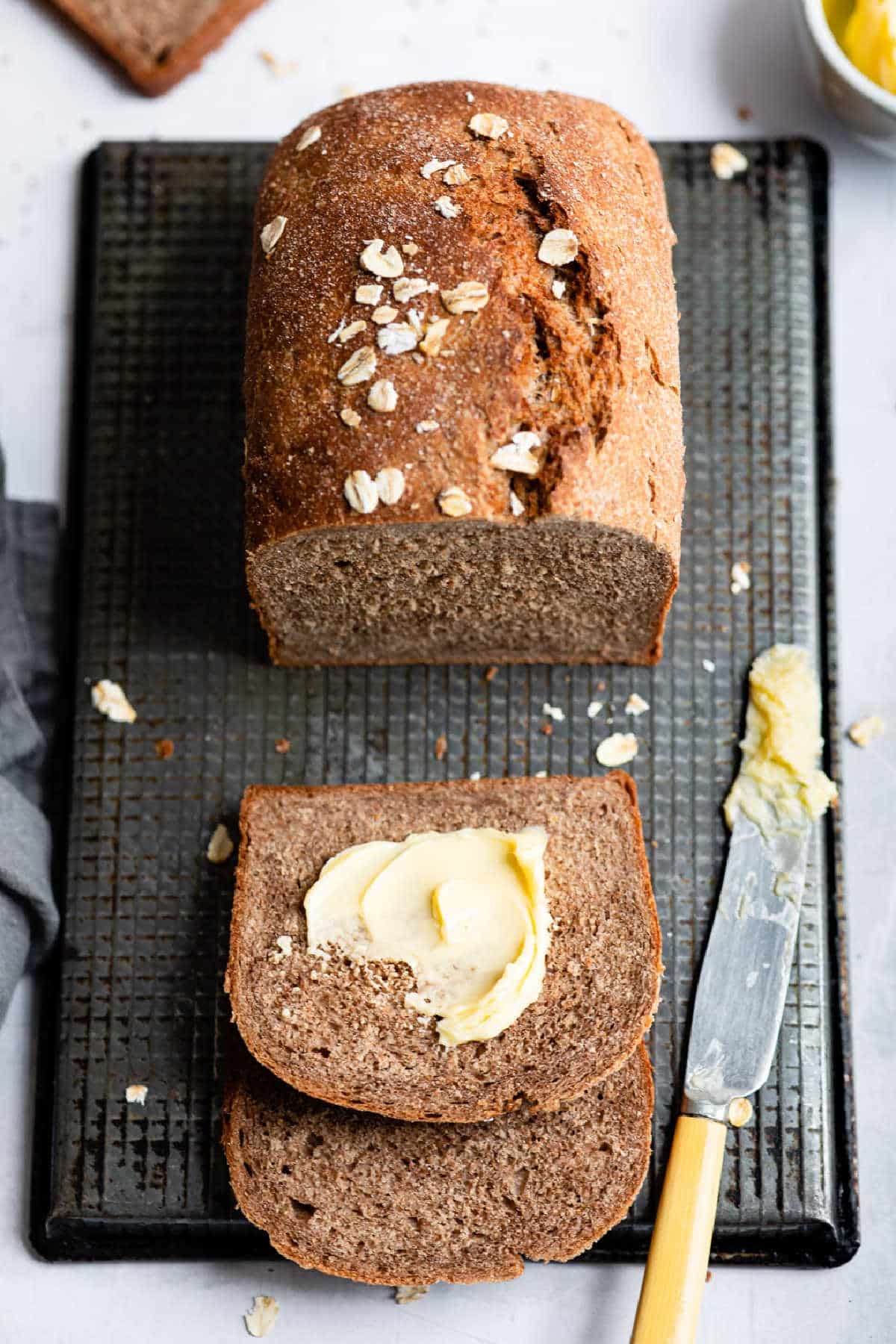 10. Brush the top of the bread with melted butter for a shiny finish.