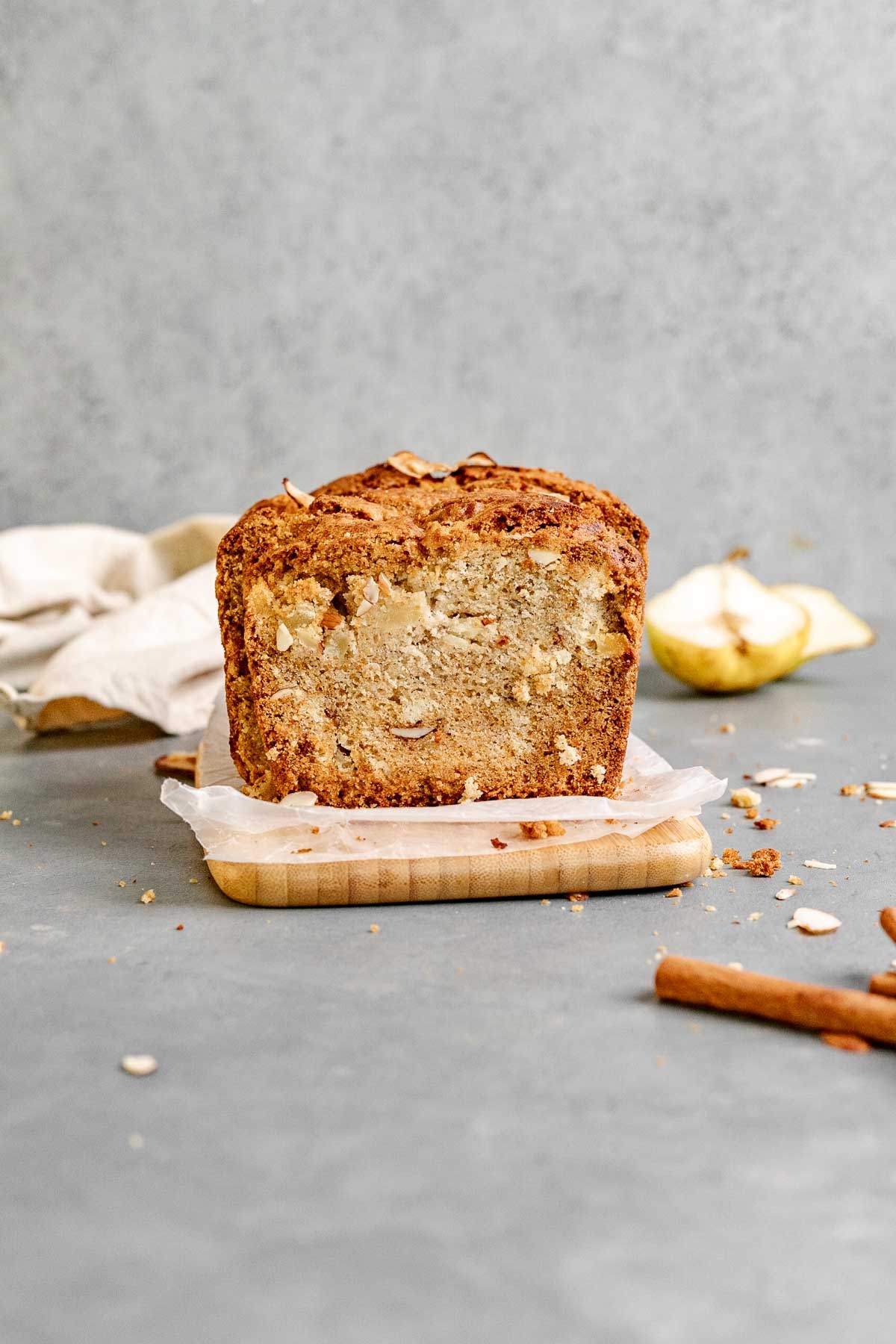 Serve slices of pear bread warm with a dollop of whipped cream or a scoop of vanilla ice cream for a decadent dessert option.