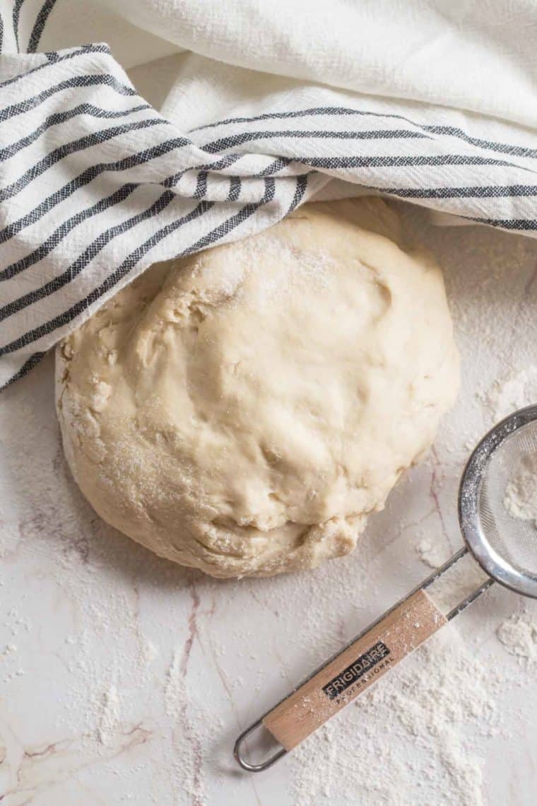 6. Shape the dough into a ball and cover it with a clean kitchen towel. Let it rest for about 30 minutes.