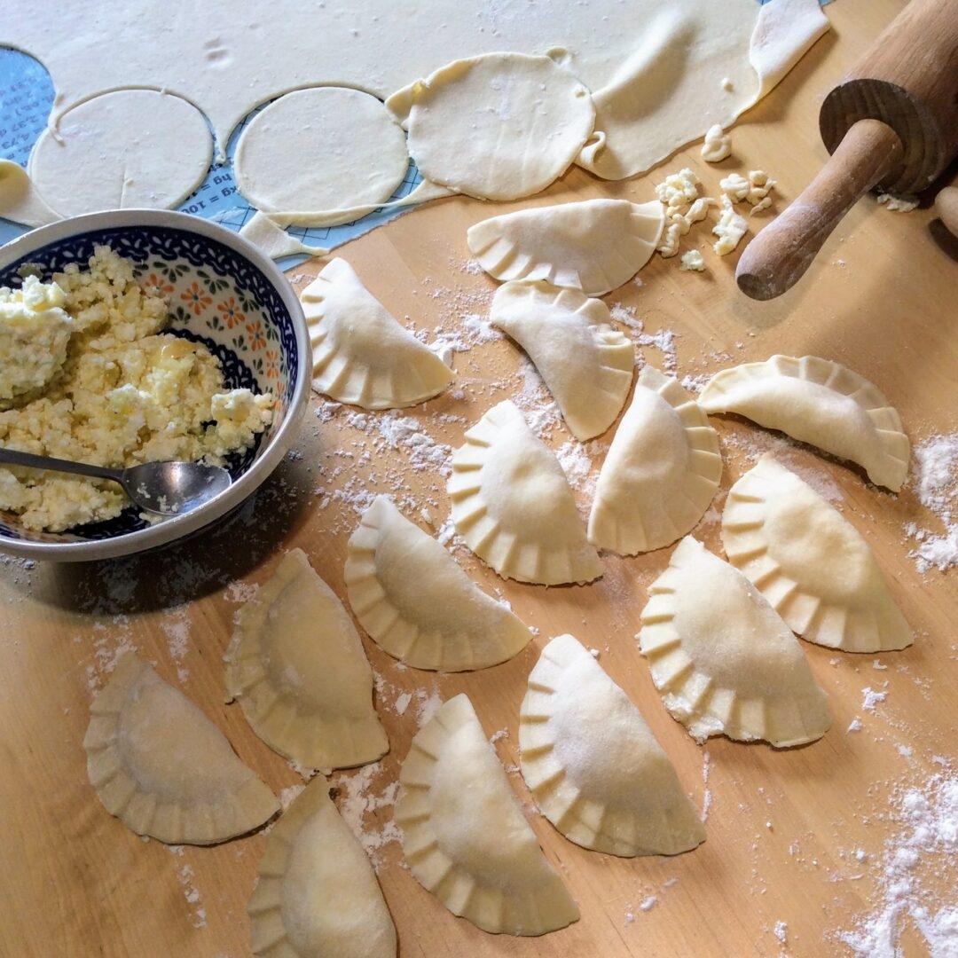 10. Repeat with the remaining dough and filling until all pierogies are assembled.