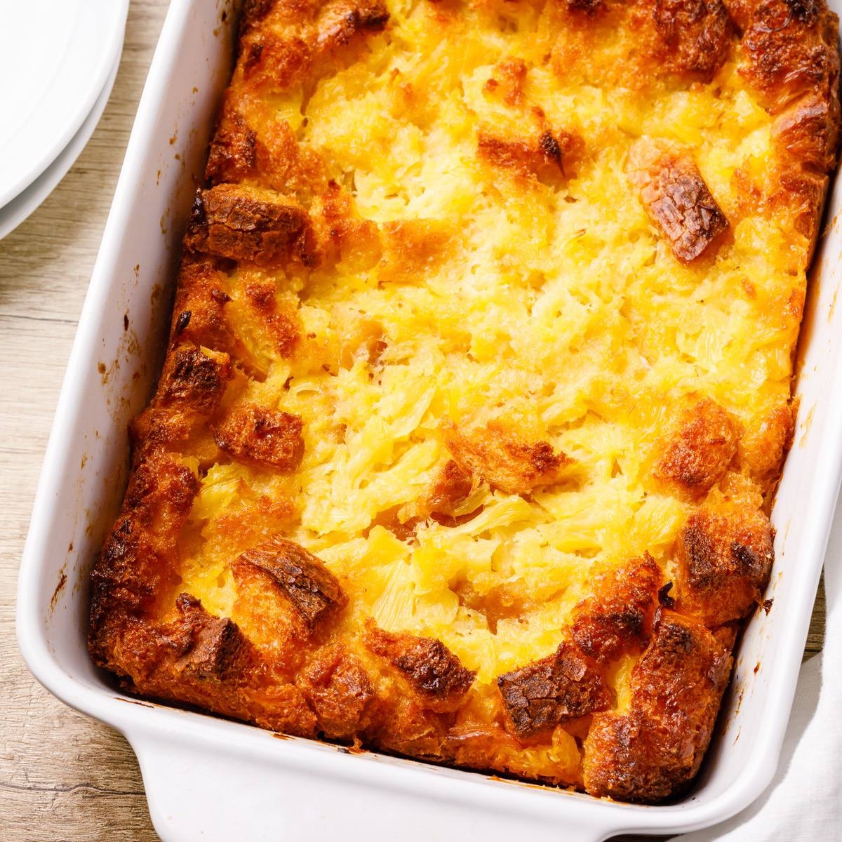 4. Pour the butter mixture over the bread and pineapple, and toss to coat evenly.