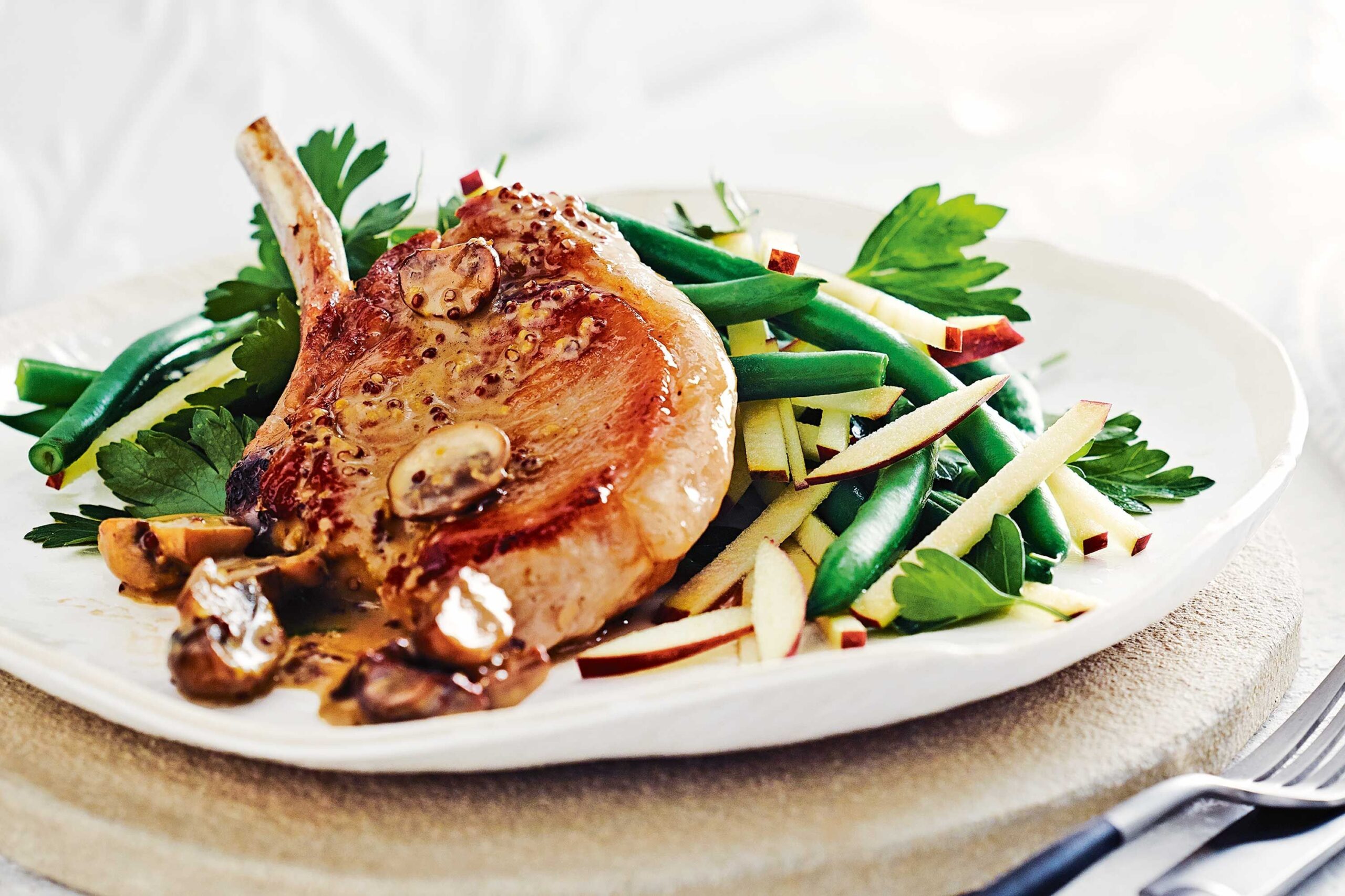 Maple And Mustard Pork Cutlets With Apple Salad Recipes Delicious au