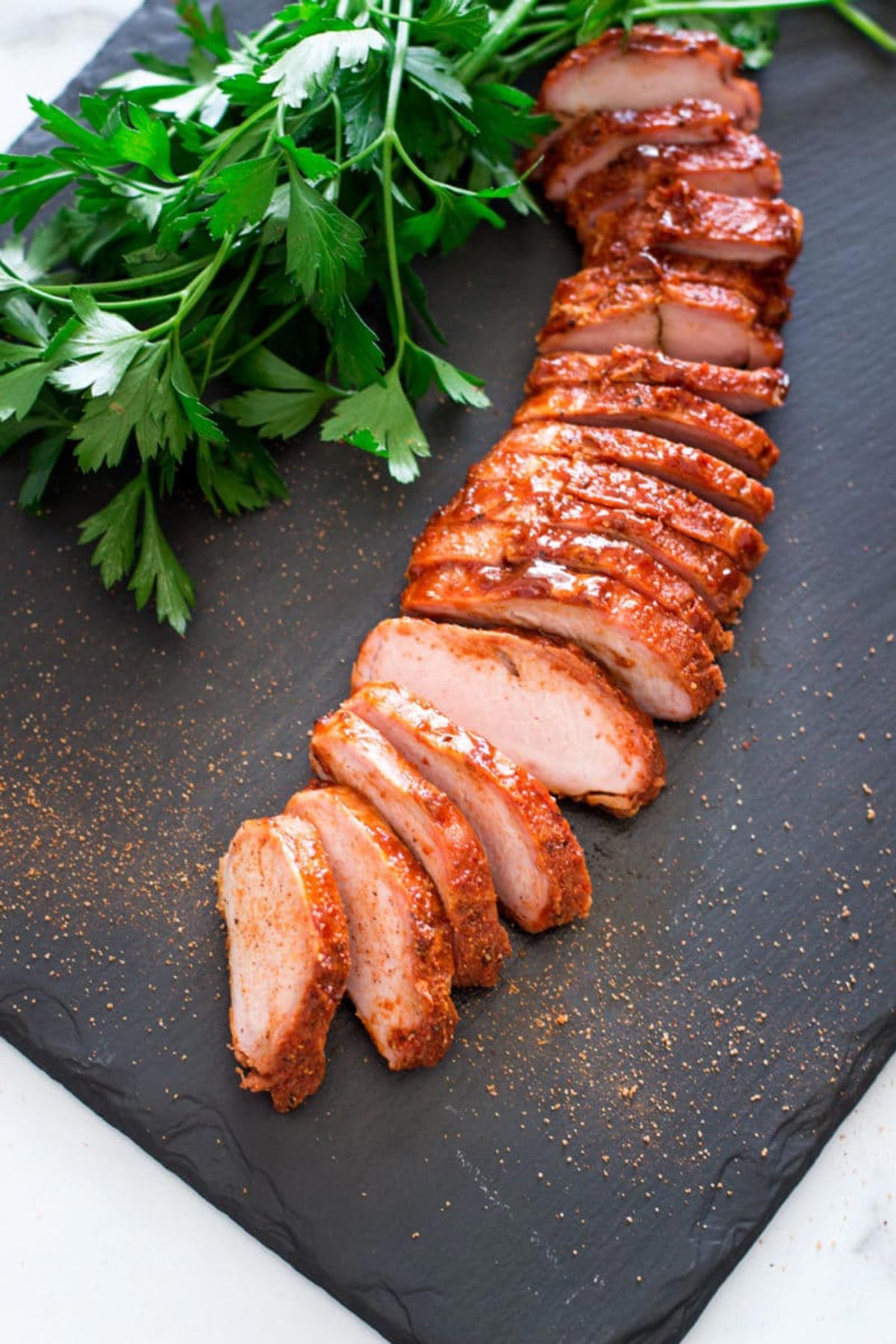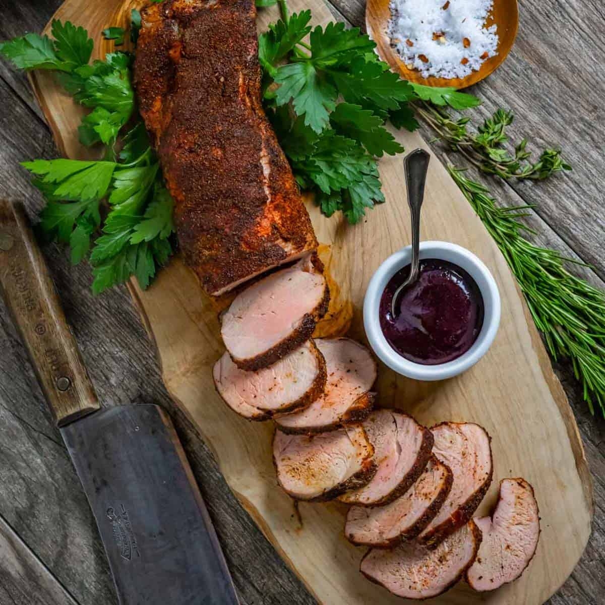 6. Once cooked, remove the pork tenderloin from the smoker and let it rest for 10 minutes before slicing.