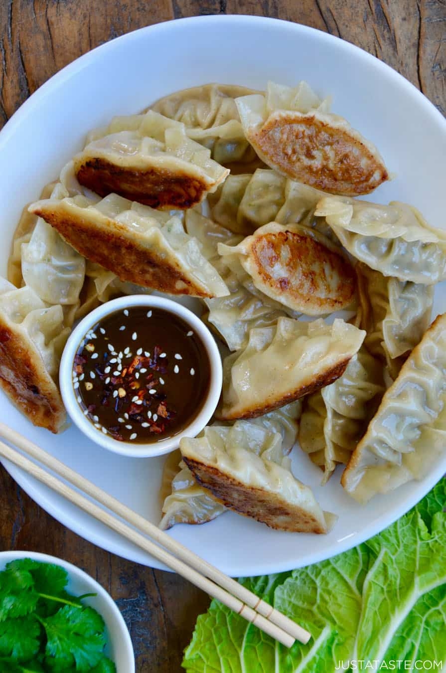 Easy Chicken Potstickers With Soy Dipping Sauce Just A Taste
