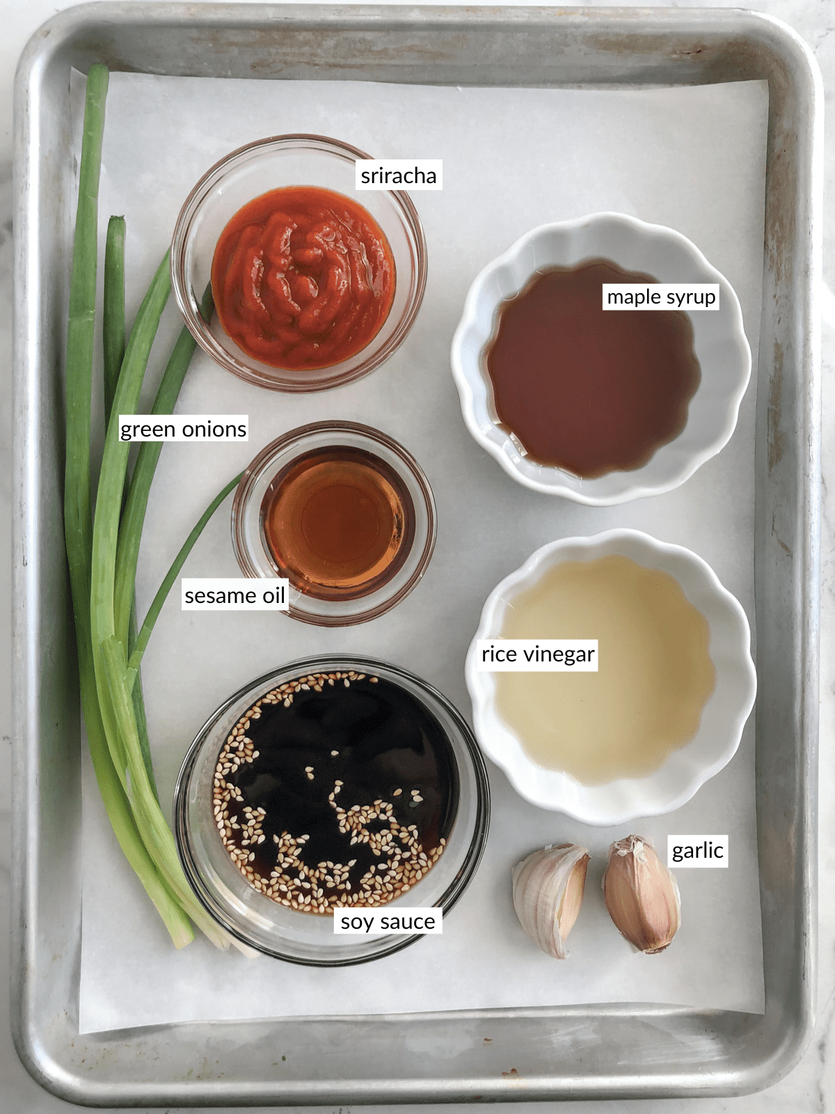 1. In a small bowl, whisk together the soy sauce, rice vinegar, sesame oil, honey, ginger, garlic, and chili flakes.