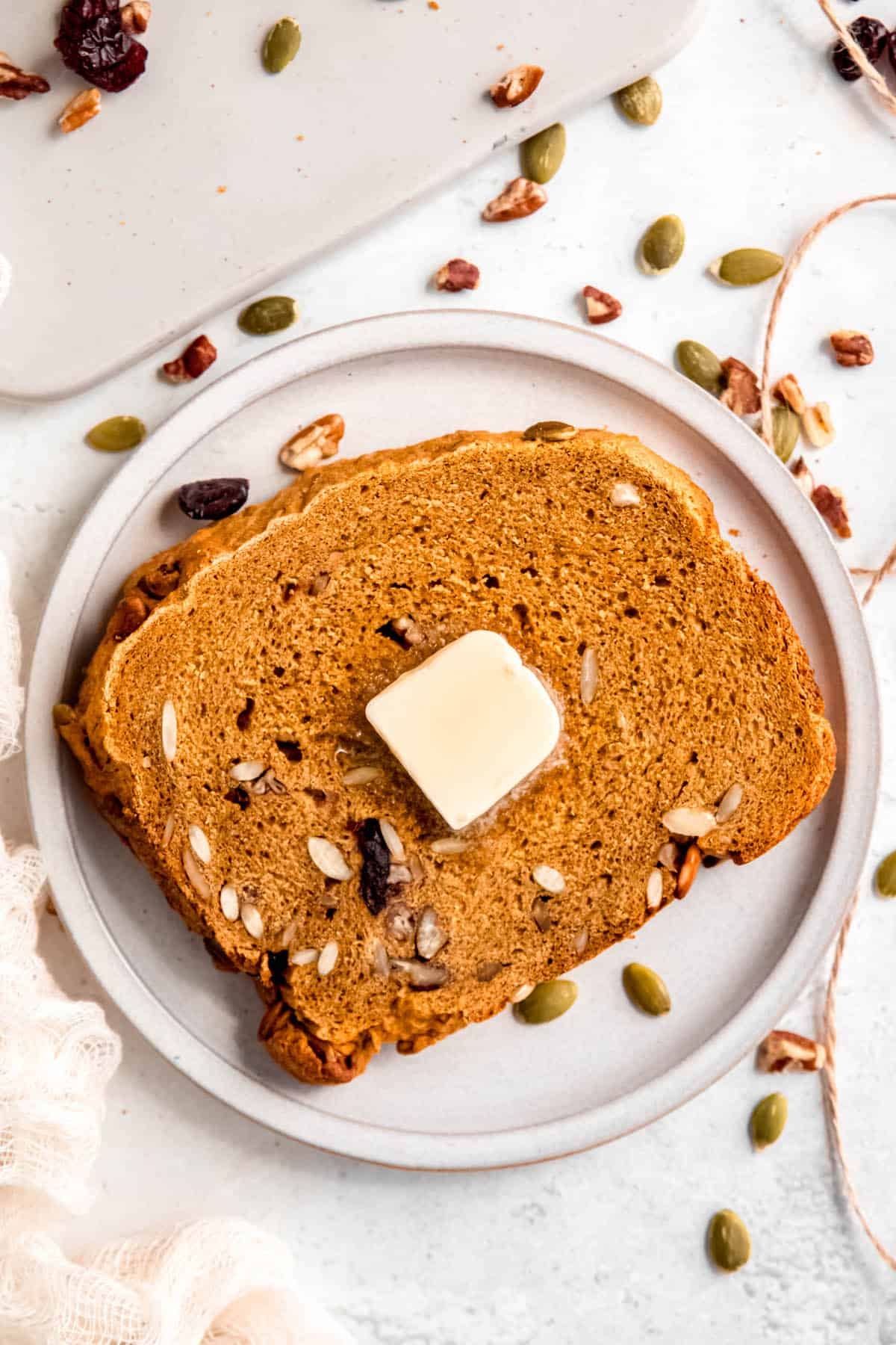 Serve your pumpkin bread warm with a pat of butter or cream cheese for a delightful fall treat.