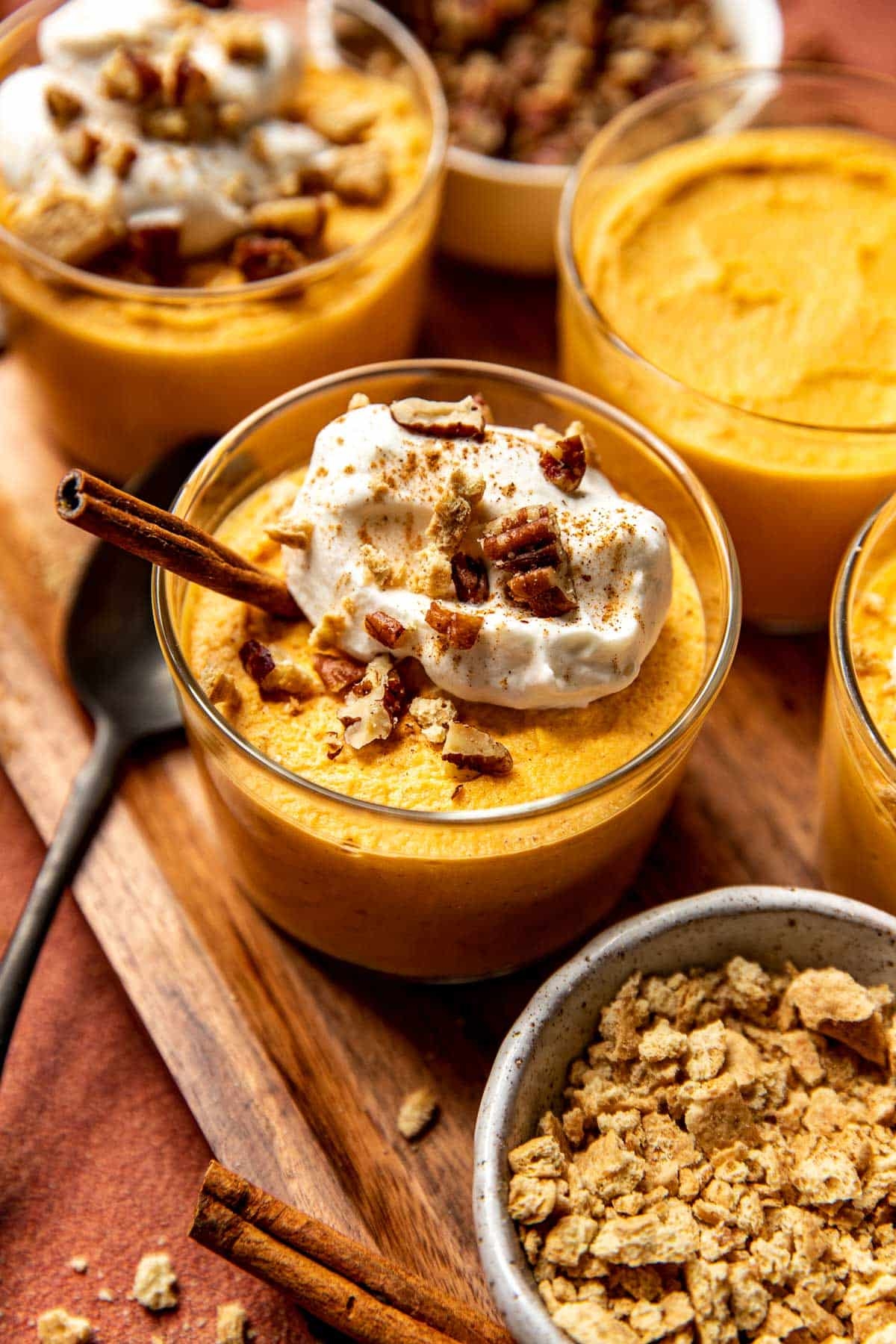 For a fun twist, try adding a layer of crushed graham crackers or ginger snaps to the bottom of each serving dish before adding the pumpkin mousse for a delicious crust-like texture.