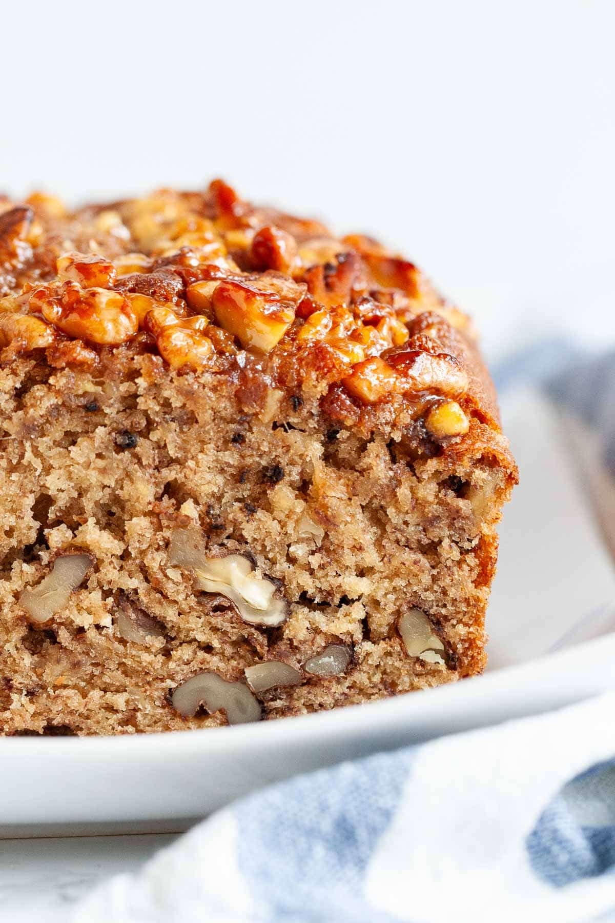 10. Slice the banana nut bread and serve warm or at room temperature.