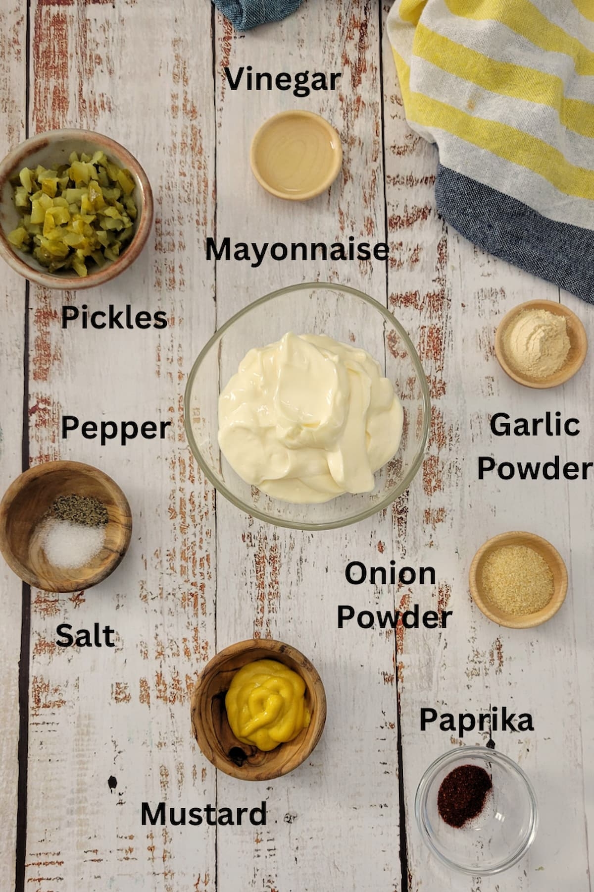 1. In a small bowl, mix together the mayonnaise, French dressing, sweet pickle relish, minced onion, white vinegar, sugar, and salt.