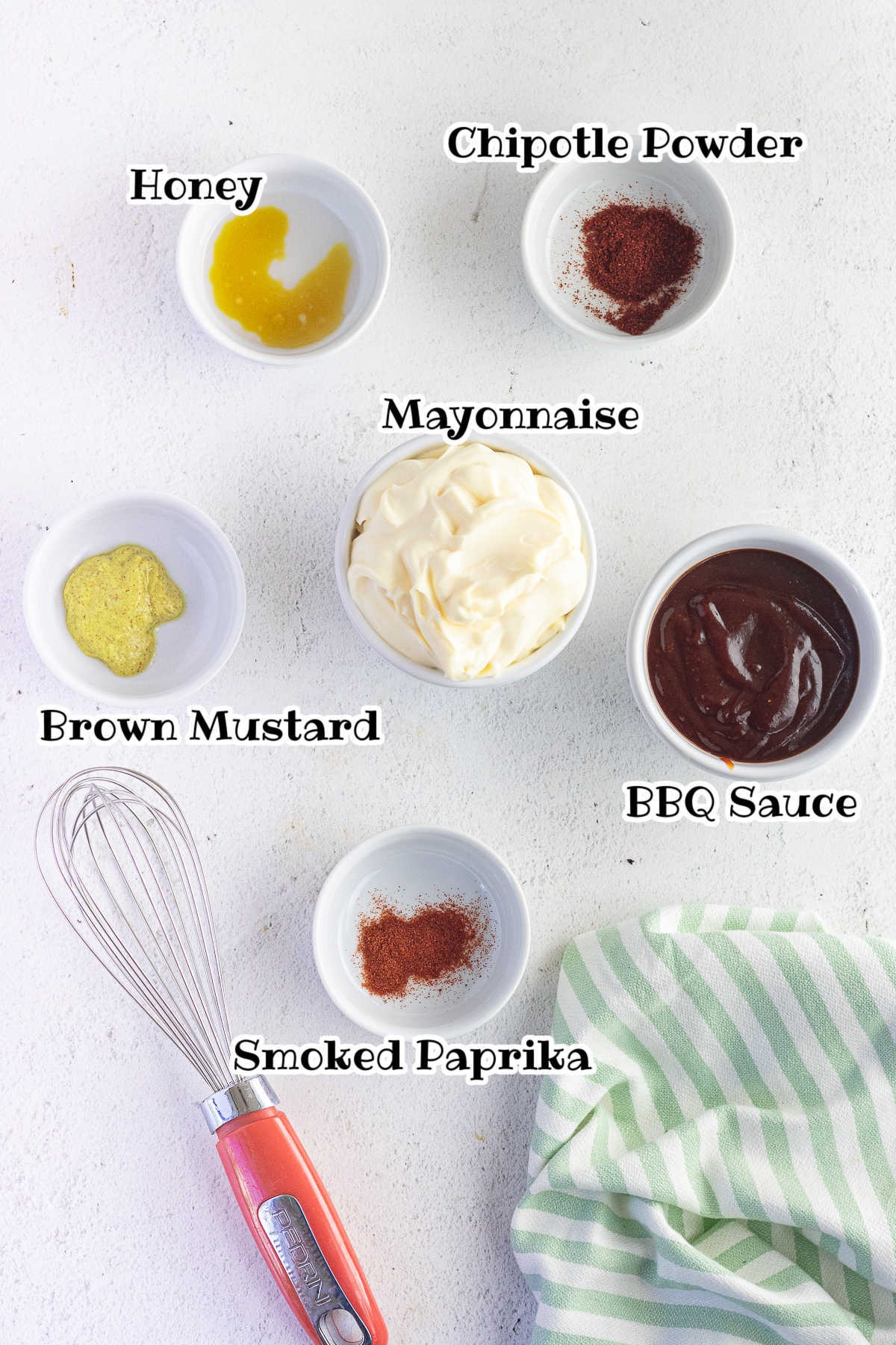 1. In a mixing bowl, combine mayonnaise, BBQ sauce, honey, smoked paprika, garlic powder, and onion powder.