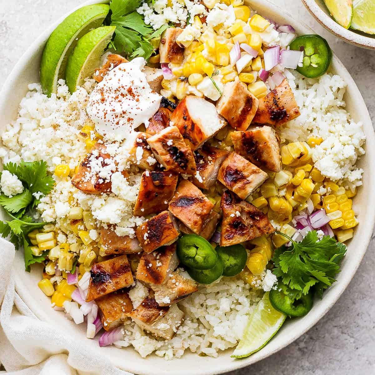 To make this street corn chicken rice bowl, you’ll need a few key ingredients. Here’s what you’ll need: