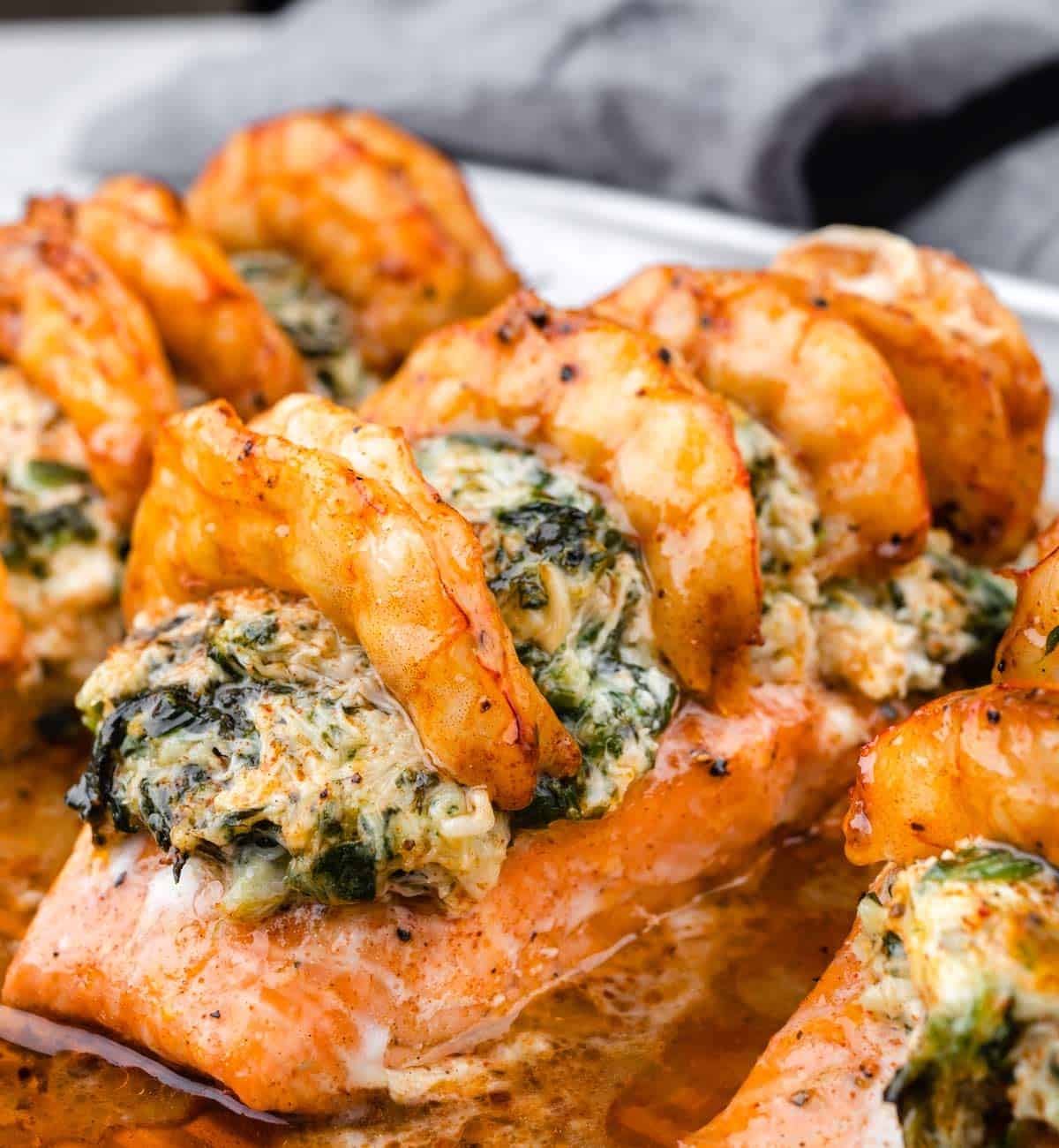 The Best Crab And Spinach Shrimp Stuffed Salmon You ll Ever Eat Our West Nest