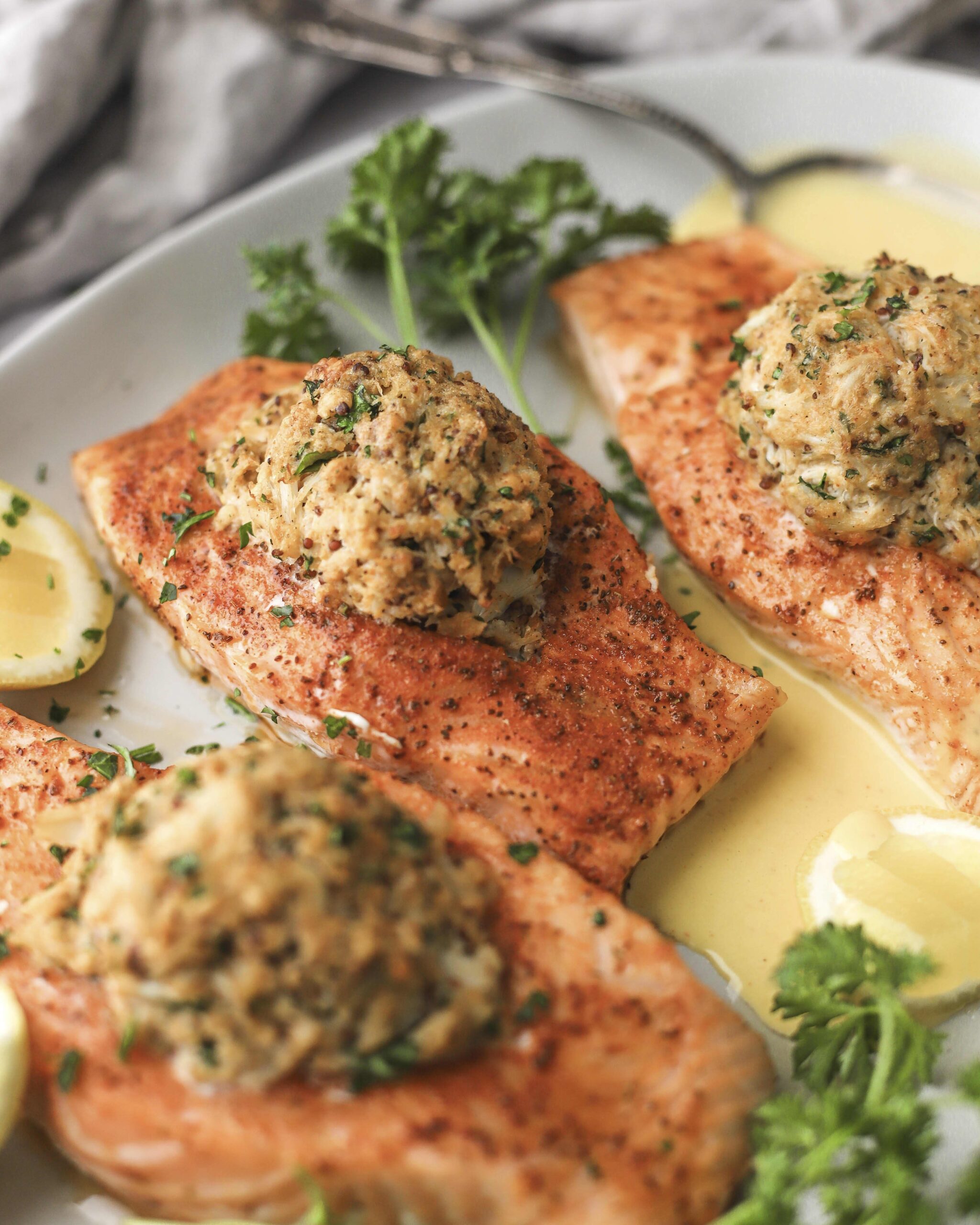 Crab Stuffed Salmon Recipe with Lemon Sauce The Kitchn