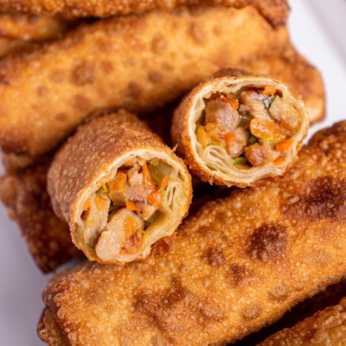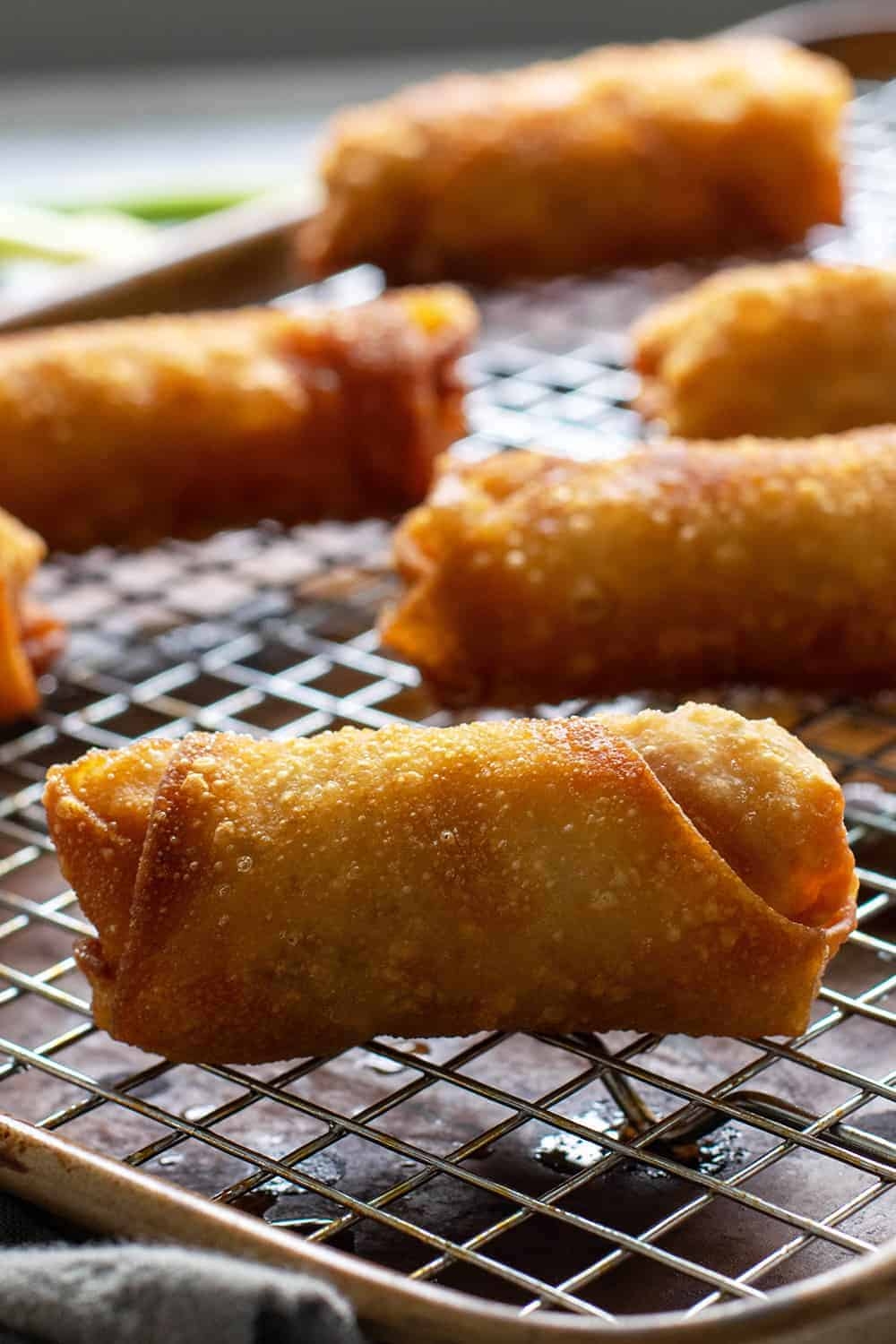 14. Fry the egg rolls in batches until they are golden brown and crispy.